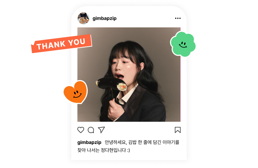 처음엔 ‘김밥 한 줄’이 이렇게 다채로운 세계를 열어줄 거라곤 상상도 못 했어요. 여러분도 마음이 가는 일을 향해 용기 내어 걸어보세요! 좋아하는 것을 따라가는 길은 뜻밖의 기쁨을 데려오고, 새로운 세계로 데려가 줄 테니까요. 그 시작은 언제나 한 걸음이면 충분합니다.