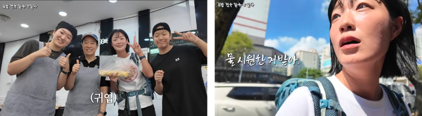 여름에 2주간 전국김밥일주를 다녀왔는데, 많은 분의 응원을 느꼈어요. 특히 목포에서 길을 걷고 있을 때 어떤 아저씨께서 힘내라며 시원한 물을 건네주시는데 감동이 밀려오더라고요. 그렇게 도착한 김밥집에서는 그간 활동을 쭉 지켜봤다며 응원해 주셔서 울컥하기도 했고요. 그저 좋아서 시작한 일이었는데, 누군가는 제 이야기를 통해 기운을 얻고, 또 응원까지 보내주신다는 사실이 참 감사했어요.