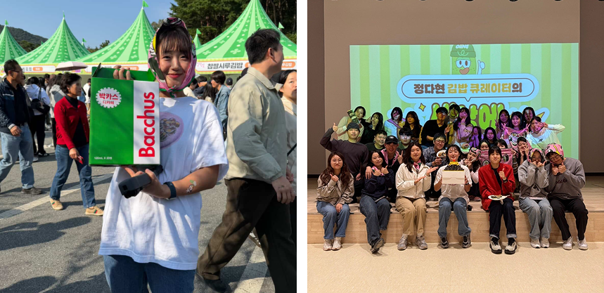 맞아요. 넷플릭스 ‘케이팝 데몬 헌터스’, ‘김밥의 천국’으로 김밥이 전 세계적으로 알려지면서 외국인들이 김밥을 말아보는 영상이 SNS에 올라올 때마다 신기하더라고요. 지난가을엔 김천김밥축제에 참여하면서 관심이 정말 뜨겁다는 걸 다시금 느꼈어요. 일본 도쿄에서 팬 한 분이 축제 현장에 직접 찾아주셨는데요. 한국 김밥의 고소함을 너무 좋아하신다며 이야기를 건네시는데, 그 순간 괜히 뿌듯하기도 하고 기뻤어요. (웃음)