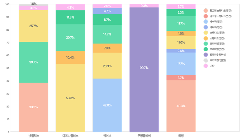 | 넷플릭스 | 디즈니플러스 | 웨이브 | 쿠팡플레이 | 티빙 |