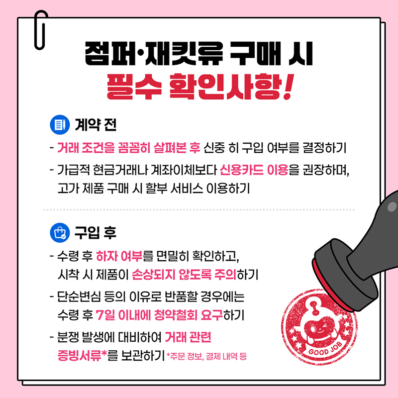 - 본문 속 구매 전·후 체크포인트를 확인하고 피해를 예방해보세요.