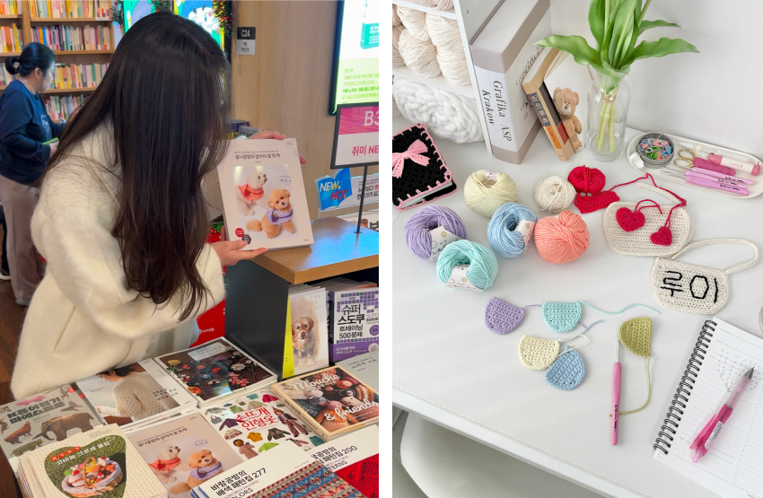 처음에는 집에서 시간을 보내며 스트레스를 풀기 위한 가벼운 취미였어요. 그러던 중 반려동물에게 직접 옷을 만들어주고 싶다는 생각이 들었는데, 당시에는 반려동물 코바늘 옷에 대한 정보가 거의 없어서 하나하나 찾아보고 만들어야 했습니다. 시행착오 끝에 첫 작품을 완성했을 때의 기쁨은 아직도 잊을 수가 없어요. (웃음) ‘알려주는 곳이 없다면 내가 알려주는 건 어떨까?’ 하는 생각으로, 작업 과정을 기록하듯 유튜브에 공유하게 되었습니다. 많은 분이 조금씩 관심을 가져주시면서 취미였던 뜨개는 자연스럽게 일이 되었고, 지금은 삶의 중심이 되었네요.