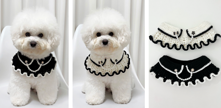 코바늘 옷은 대바늘에 비해 신축성이 적기 때문에 강아지가 불편해할 수도 있어요. 그래서 활동을 방해하지 않는지, 움직일 때 당기거나 조이지 않는지 충분히 확인하는 것이 중요해요. 그리고 강아지 피부는 예민해서 소재 선택 역시 신중해야 합니다. 너무 무겁거나 자극적인 실이나, 신축성이 없는 실은 되도록 피하는 게 좋아요. 입고 벗는 과정에서도 스트레스 받지 않도록 최대한 구조를 단순하게 설계하는 것을 추천해 드려요.