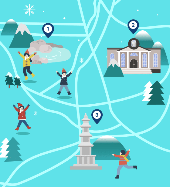 - 따뜻한 온천수에 몸을 맡기고 겨울의 피로를 녹여보아요.