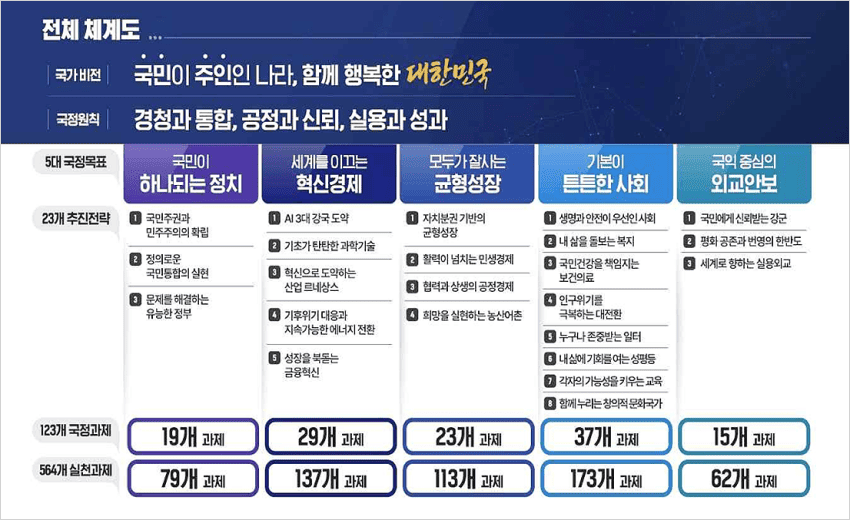 - 새 정부가 추진할 정책 방향과 실행 과제가 담긴 ‘국정운영 5개년 계획’을 발표했어요.