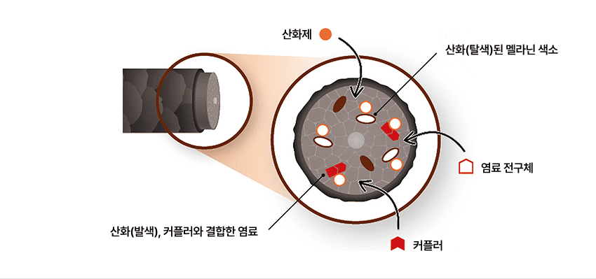 영구 염모제는 염료가 모피질 또는 모수질까지 침투하여 화학변화를 통해 모발을 구성하는 케라틴과 결합하여 모발의 색을 바꾸는 제품으로, 염모 효과가 장기간에 걸쳐 지속되는 장점이 있습니다. 산화형 염모제가 대표적이며 새치 염색, 톤 업다운, 선명한 패션 컬러 등 대부분의 시중 염모제 제품이 해당됩니다.