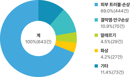 최근 5년간 한국소비자원의 소비자위해감시시스템(CISS)에 접수된 헤어 컬러링 제품 관련 위해사례는 총 643건. 위해사례 유형으로는 피부염·피부발진 등 피부 트러블과 관련된 건이 444건(69.0%)으로 가장 많았으며, 결막염·안구 손상이 70건(10.9%), 알레르기가 29건(4.5%)으로 뒤를 이었는데요. 인체인 모발에 사용하는 제품인 만큼, 사용 시 제품설명서를 준수해 안전사고가 발생하지 않도록 유의해야 합니다.