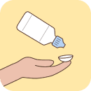 | 담그기와 문지르기를 병행해서 세척·소독하세요. | 렌즈를 세정액에 담가두기와 문질러 닦기를 병행하면 살균·세척 효과가 증가합니다. 세정액을 2~3방울 떨어뜨린 후 렌즈의 앞뒷면을 부드럽게 문질러서 닦아주세요. |