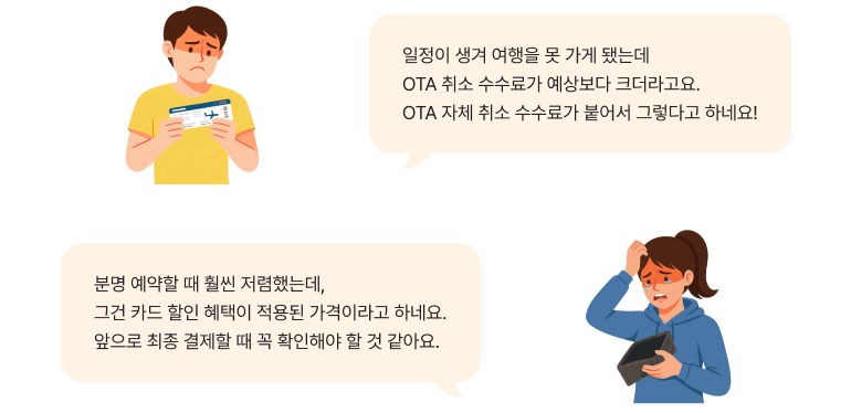 - OTA에서는 OTA 자체 취소 수수료를 부과하는 경우도 많으니 유의하세요.